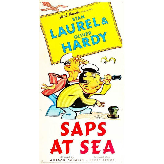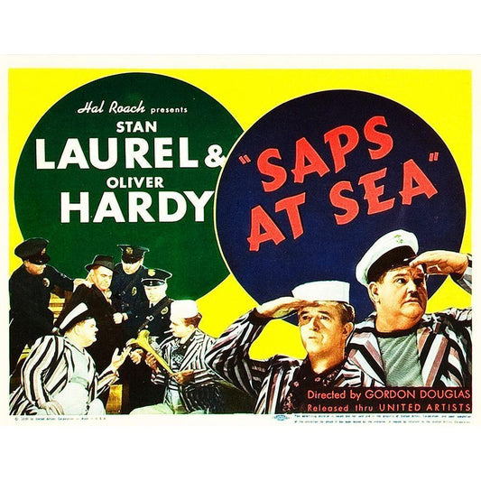 Laurel and Hardy - Saps At Sea, 1940 Black Modern Wood Framed Art Print by Hollywood Photo Archive