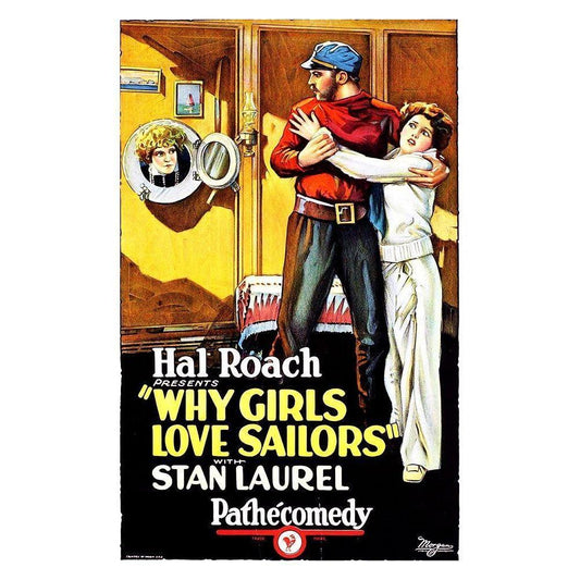 Laurel and Hardy - Why Girls Love Sailors, 1927 Black Modern Wood Framed Art Print by Hollywood Photo Archive