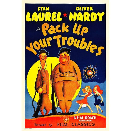 Laurel and Hardy - Pack Up Your Troubles, 1932 Black Modern Wood Framed Art Print by Hollywood Photo Archive