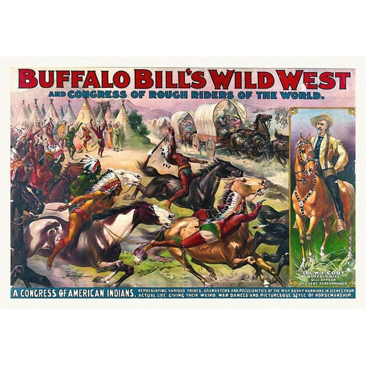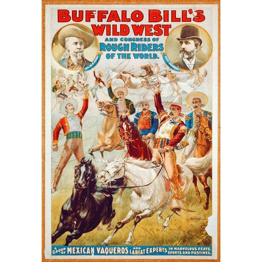 Buffalo Bills Wild West And Congress Of Rough Riders Of The World - 1896 Black Modern Wood Framed Art Print by Hollywood Photo Archive