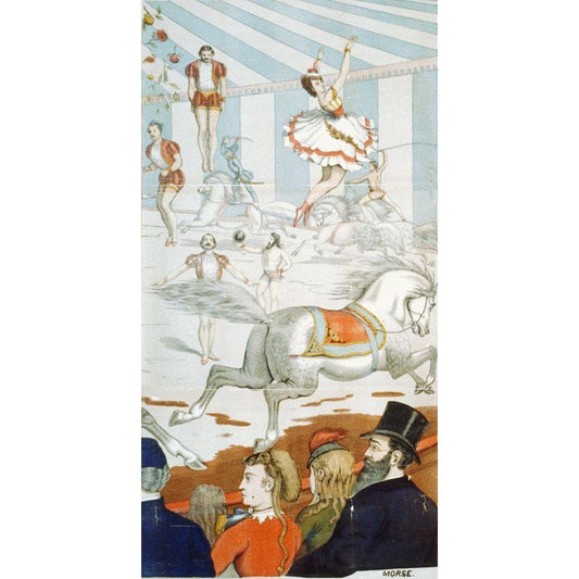 Acrobats On Horseback - 1870 Black Modern Wood Framed Art Print by Hollywood Photo Archive
