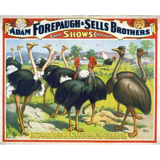 Adam Forepaugh and Sells Brothers Giant Birds Black Modern Wood Framed Art Print by Hollywood Photo Archive