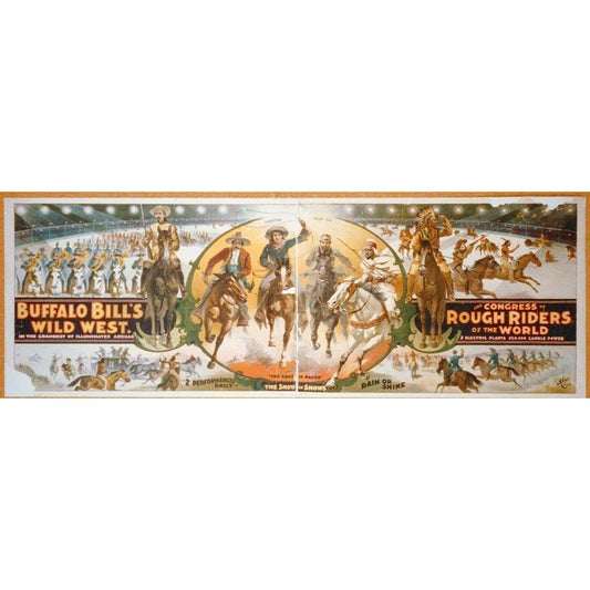 Buffalo Bills Wild West And Congress Of Rough Riders Of The World - Banner Black Modern Wood Framed Art Print by Hollywood Photo Archive