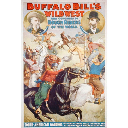 Buffalo Bills Wild West And Congress Of Rough Riders Of The World - South-American Gauchos, The Worl Black Modern Wood Framed Art Print by Hollywood Photo Archive