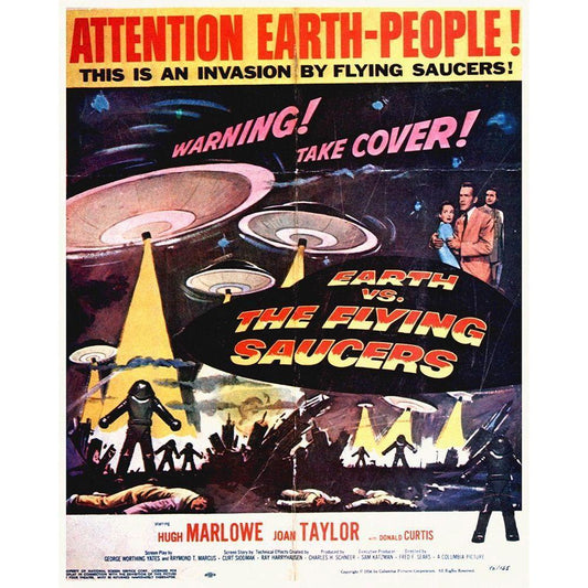Earth Vs The Flying Saucers Black Modern Wood Framed Art Print by Hollywood Photo Archive