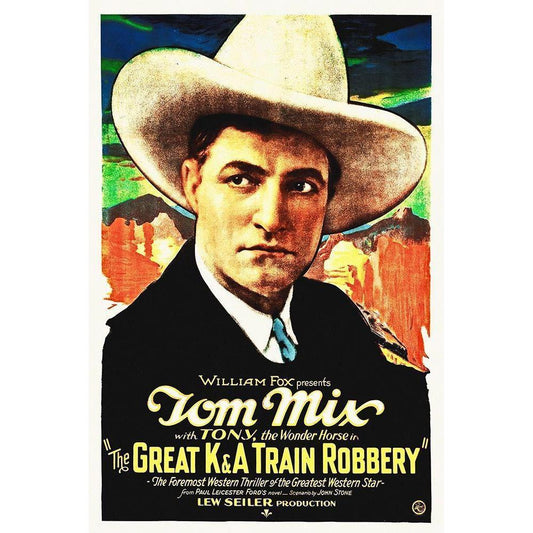 Tom Mix, The Great Train Robbery Black Modern Wood Framed Art Print by Hollywood Photo Archive