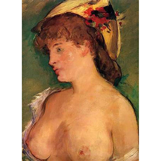Blonde Woman with Bare Breasts Black Modern Wood Framed Art Print with Double Matting by Manet, Edouard