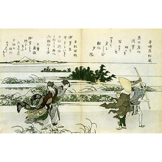 Women Returning Home At Sunset Black Modern Wood Framed Art Print with Double Matting by Hokusai