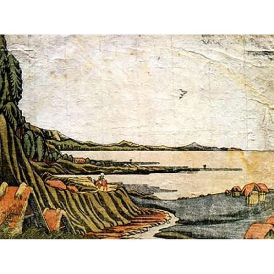 View At Gyotoku Black Modern Wood Framed Art Print with Double Matting by Hokusai