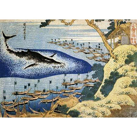 Whaling Off The Goto Islands Black Modern Wood Framed Art Print with Double Matting by Hokusai