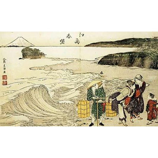 Women On The Beach At Enoshima II Black Modern Wood Framed Art Print with Double Matting by Hokusai