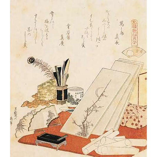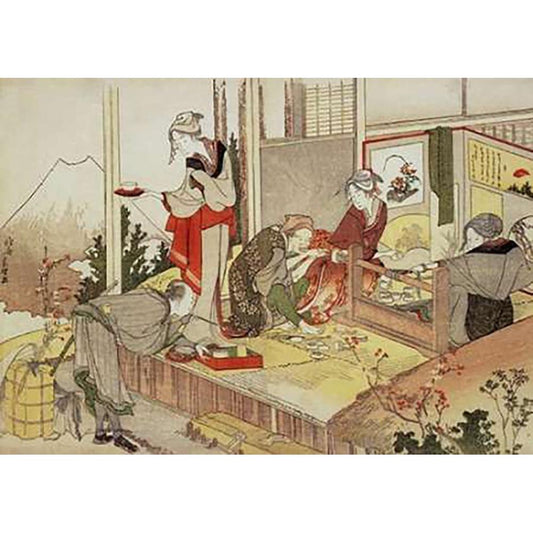 A Netsuke Workshop 1798 Black Modern Wood Framed Art Print with Double Matting by Hokusai