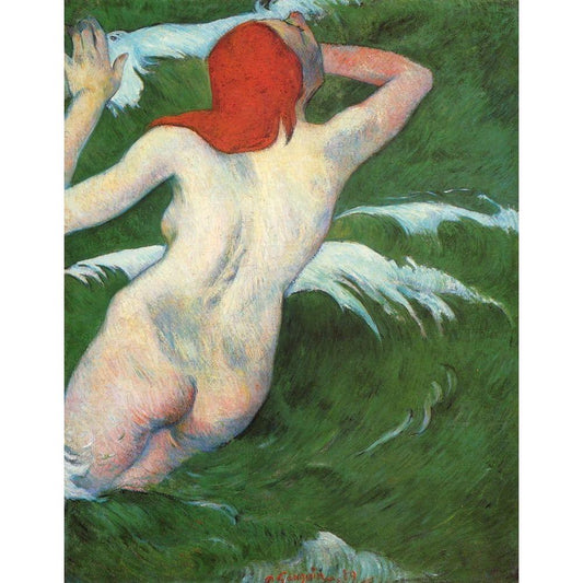 Woman In The Waves Black Modern Wood Framed Art Print with Double Matting by Gauguin, Paul