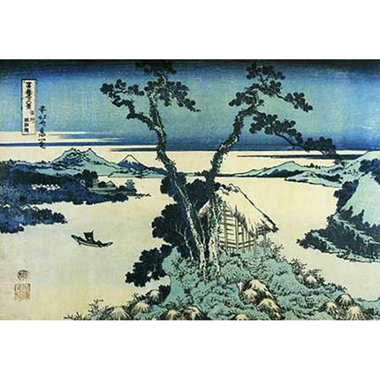 A View Of Mount Fuji Across Lake Suwa In Shinano Province 1831 Black Modern Wood Framed Art Print with Double Matting by Hokusai