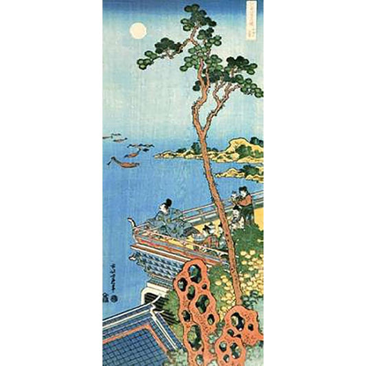 Nakamaro Watching The Moon From A Hill Black Modern Wood Framed Art Print with Double Matting by Hokusai