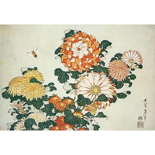 Museumysanthemum And Bee Black Modern Wood Framed Art Print with Double Matting by Hokusai