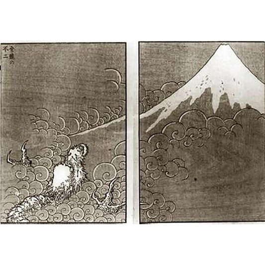 Mount Fuji And A Dragon Black Modern Wood Framed Art Print with Double Matting by Hokusai