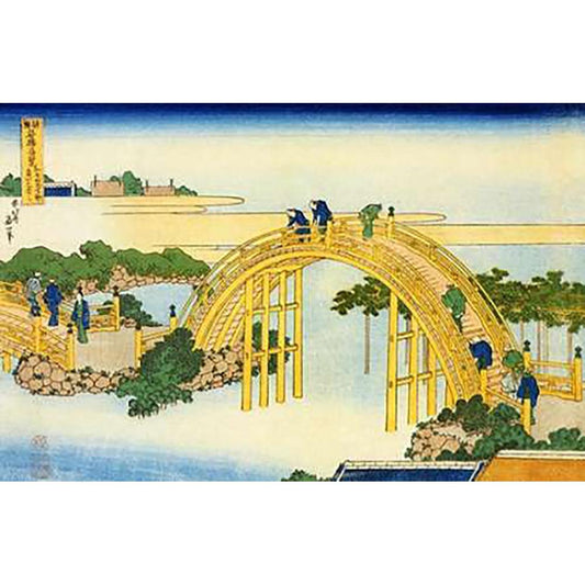 The DMaps Bridge At Kameido Shrine Black Modern Wood Framed Art Print with Double Matting by Hokusai