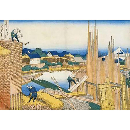 The Timber Yard By The Tate River 1835 Black Modern Wood Framed Art Print with Double Matting by Hokusai