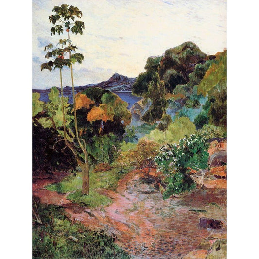 Tropical Vegetation Black Modern Wood Framed Art Print with Double Matting by Gauguin, Paul