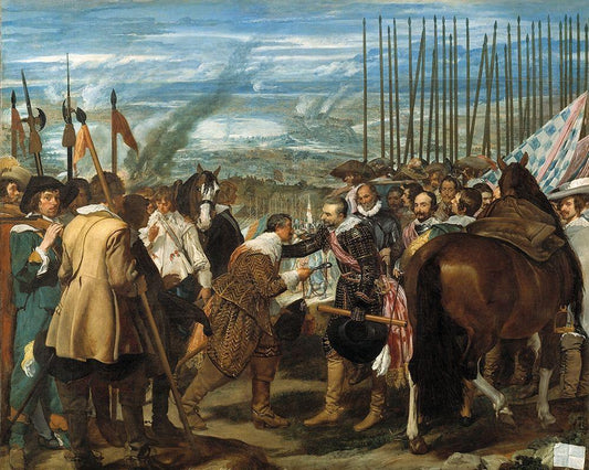 The Surrender of Breda White Modern Wood Framed Art Print with Double Matting by Velazquez, Diego
