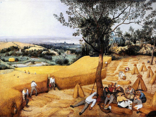 The Harvesters White Modern Wood Framed Art Print with Double Matting by Bruegel the Elder, Pieter