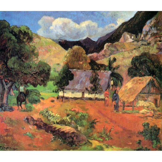 Mountain Road Black Modern Wood Framed Art Print with Double Matting by Gauguin, Paul