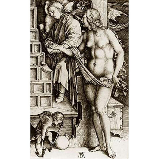 The Temptation Of The Idler Black Modern Wood Framed Art Print with Double Matting by Durer, Albrecht