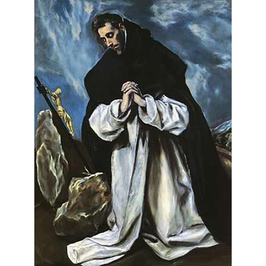 Saint Dominic In Prayer Black Modern Wood Framed Art Print with Double Matting by Greco, El