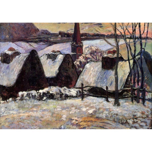 Breton Village In The Snow Black Modern Wood Framed Art Print with Double Matting by Gauguin, Paul
