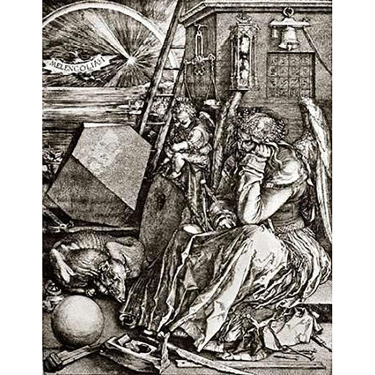 Melencolia Black Modern Wood Framed Art Print with Double Matting by Durer, Albrecht