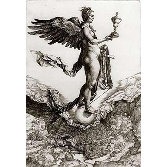 Nemesis Black Modern Wood Framed Art Print with Double Matting by Durer, Albrecht