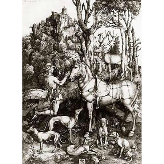 St Eustace Black Modern Wood Framed Art Print with Double Matting by Durer, Albrecht