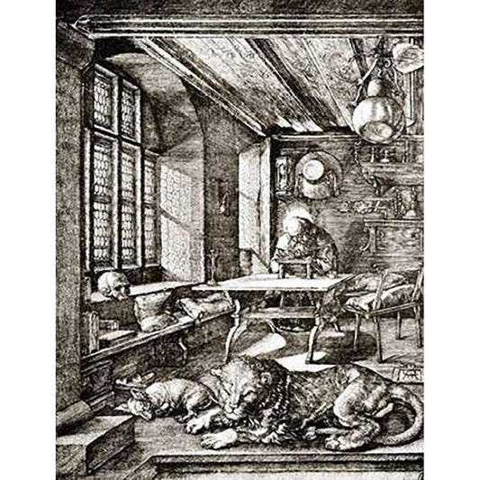St Jerome In His Cell 2 Black Modern Wood Framed Art Print with Double Matting by Durer, Albrecht