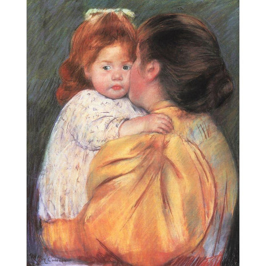 Maternal Kiss 1897 Black Modern Wood Framed Art Print with Double Matting by Cassatt, Mary
