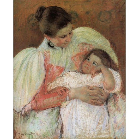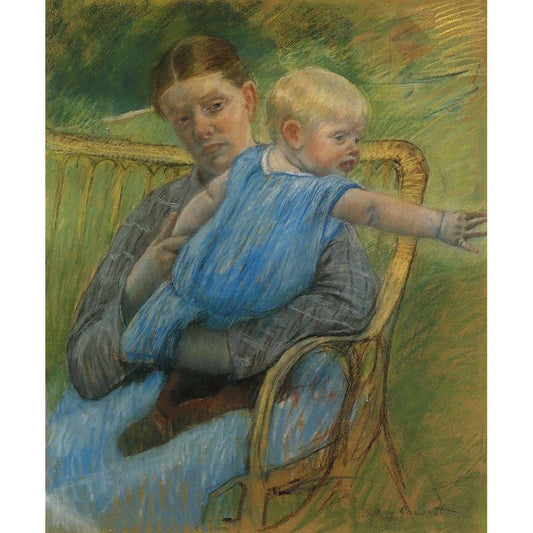 Mathilde Holding A Baby Who Reaches Out To The Right 1889 Black Modern Wood Framed Art Print with Double Matting by Cassatt, Mary
