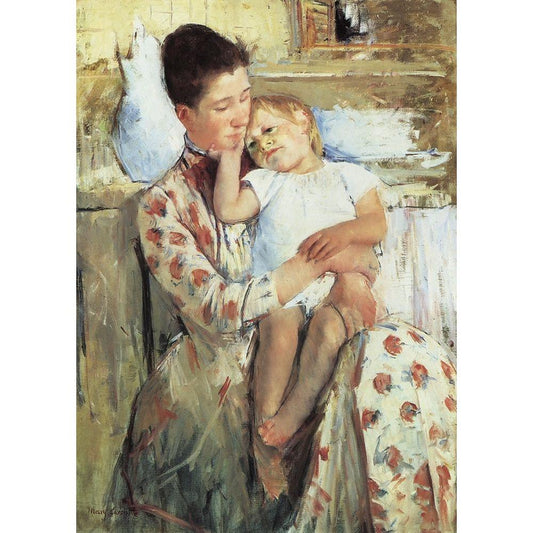Mother And Child 1890 Black Modern Wood Framed Art Print with Double Matting by Cassatt, Mary