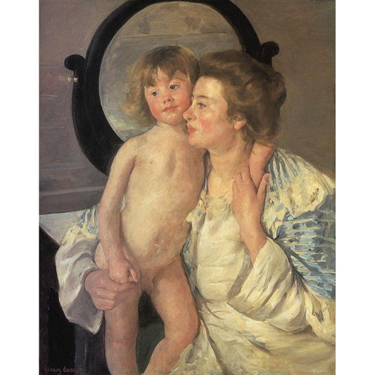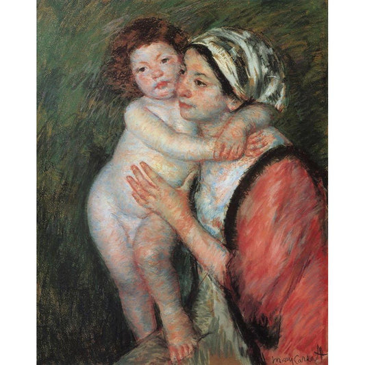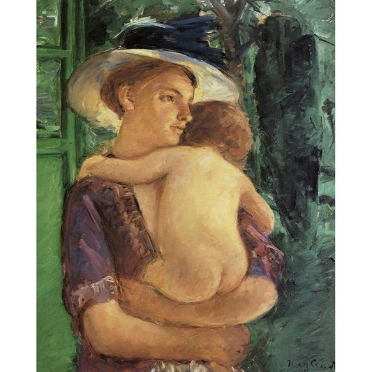 Mother In Hat Holding Her Nude Baby Seen In Back View 1909 Black Modern Wood Framed Art Print with Double Matting by Cassatt, Mary