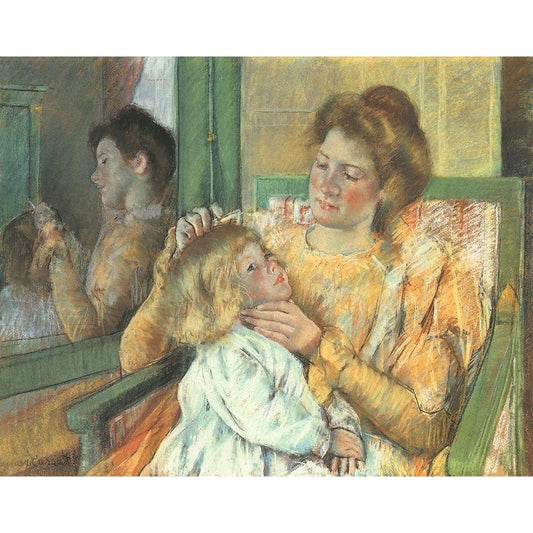 Mother Combing Her Childs Hair 1898 Black Modern Wood Framed Art Print with Double Matting by Cassatt, Mary