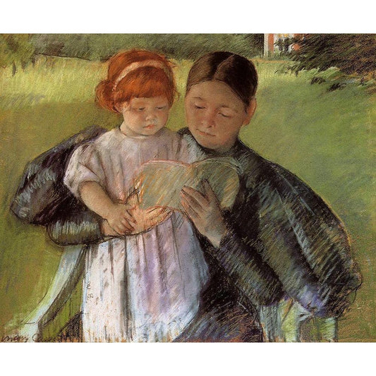 Nurse Reading To A Little Girl 1895 Black Modern Wood Framed Art Print with Double Matting by Cassatt, Mary