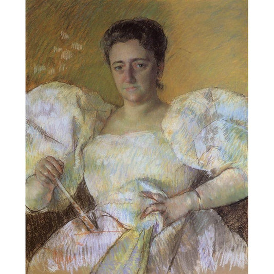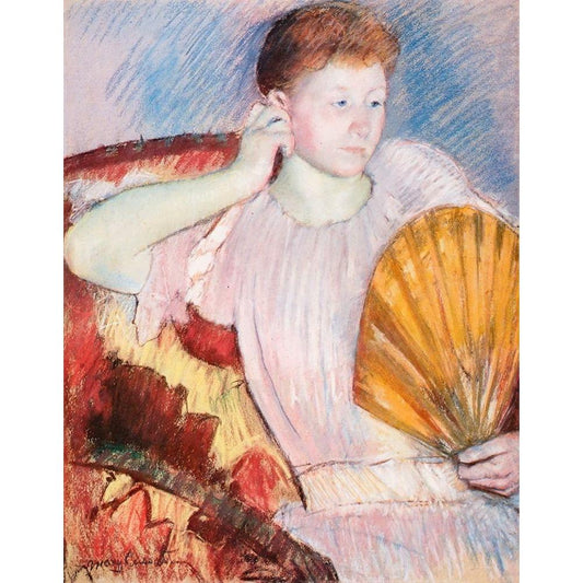 Portrait Of A Woman With A Fan Black Modern Wood Framed Art Print with Double Matting by Cassatt, Mary
