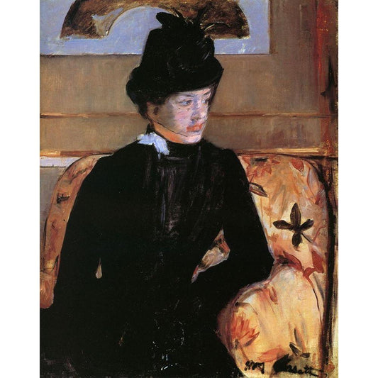 Portrait Of A Young Woman In Black 1883 Black Modern Wood Framed Art Print with Double Matting by Cassatt, Mary