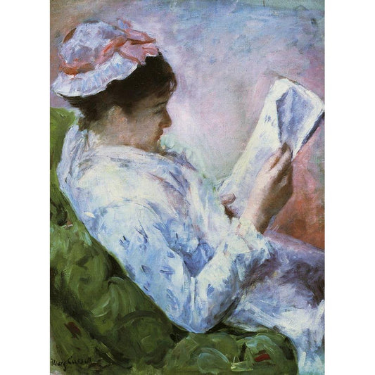 Portrait Of Lydia Reading 1879 Black Modern Wood Framed Art Print with Double Matting by Cassatt, Mary