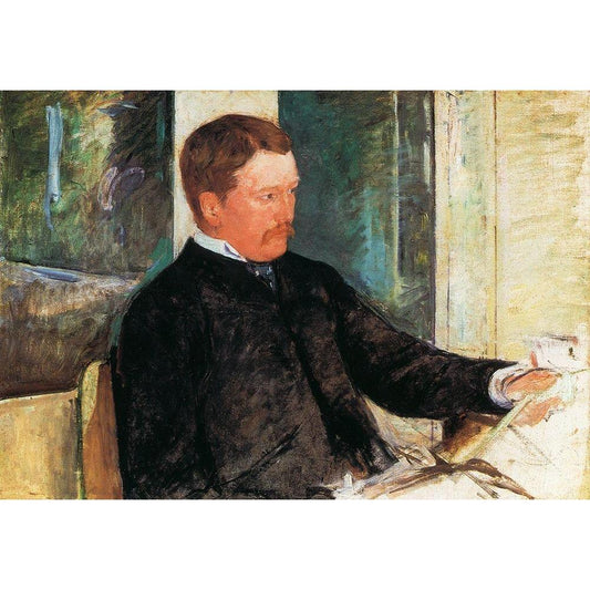 At The Window 1889 Black Modern Wood Framed Art Print with Double Matting by Cassatt, Mary