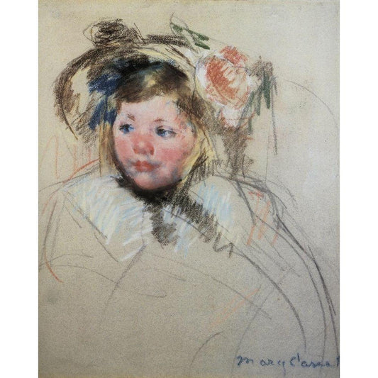 Head Of Sara In A Bonnet Looking To The Left 1901 Black Modern Wood Framed Art Print with Double Matting by Cassatt, Mary