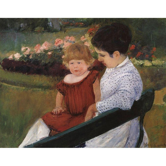 Children In A Garden 1878 Black Modern Wood Framed Art Print with Double Matting by Cassatt, Mary