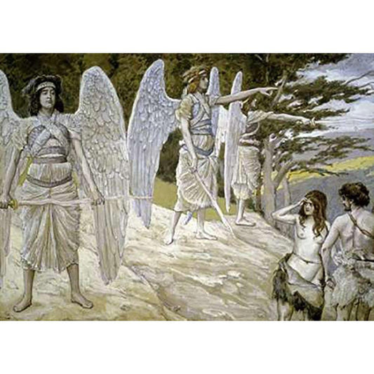 Adam and Eve Driven from Paradise Black Modern Wood Framed Art Print with Double Matting by Tissot, James