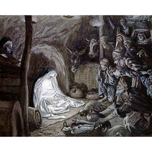 Adoration of the Shepherds Black Modern Wood Framed Art Print with Double Matting by Tissot, James