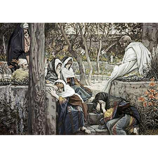 Jesus at Bethany Black Modern Wood Framed Art Print with Double Matting by Tissot, James