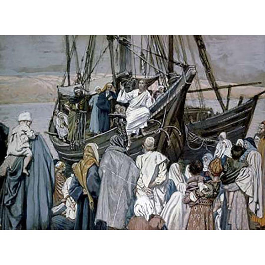 Jesus Preaching on a Boat Black Modern Wood Framed Art Print with Double Matting by Tissot, James